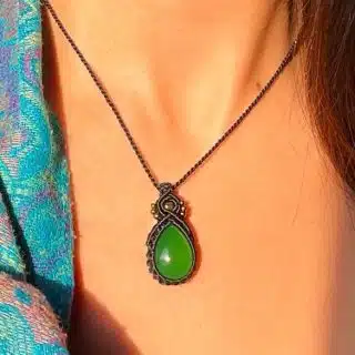 A Handmade adjustable Necklace created with green agate as main pendant and brass.