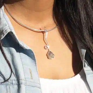 Handmade Sterling Silver Pendant with a Rose Quartz Natural Raw Crystals