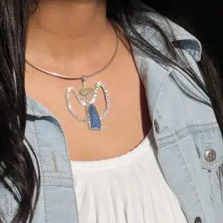 Handmade Sterling Gold Platted Silver Pendant with a Peridot, Turquoise, Coral, and Lapis Lazuli Gemstone