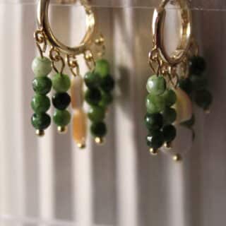Made of irregular shaped chip gemstone beads in powder rose colour mixed with a unique pendant with the word passion in Arabic “عشق” and Chinese gold chain -
