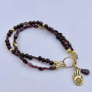 January birthstone, Garnet bracelet, Fatima’s hand, brings happiness, prevents nightmares.
