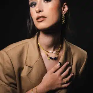 Pure 925 silver platted in 18K gold Necklace, coating natural صدف ; can be paired with a natural pearls bracelet.