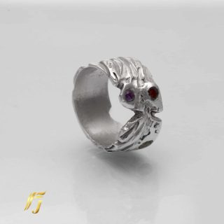 Handmade Swiss silver ring with lotus blossom two sides different pattern for each side and one zircon stone .