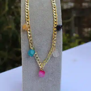 Bag charms made of fuchsia agate stones and hanged a plated fuchsia pendant in the shape of a flower