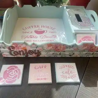 Wooden coffee capsules holder & coasters in rustic brown color