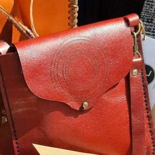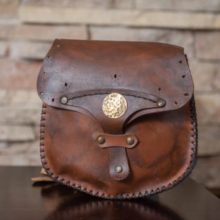 0102 Handmade Genuine leather cross bag with handmade copper figure