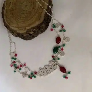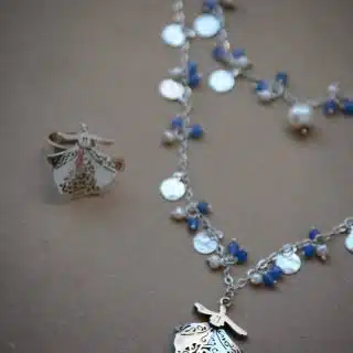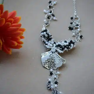 The swirling Darwish sterling silver necklace with pearls and onyx stones