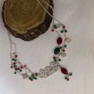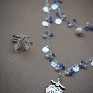 The swirling Darwish sterling silver necklace with pearls and onyx stones