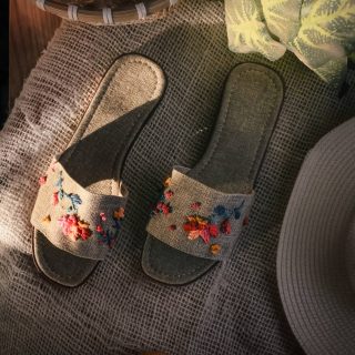 - Deck tote bag size 35* 45 with handmade floral embroidery.