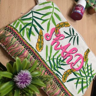 Wooden handpainted bag,