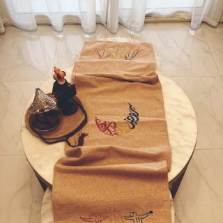 Handmade Ramadan runner, made with linen and ramadan fabric