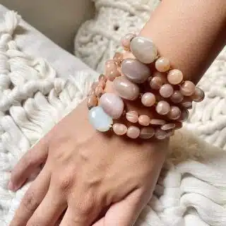 -Sunstone Bracelet With Moonstone Center And Gold Hematite Details