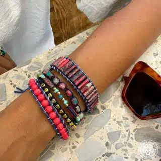 3-Macrame stone mix bracelet ( Cylinder jasper, Hematite, Turquoise, Agate)