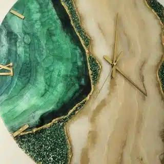 Unique decorative green agate resin wall oclock on wood board .. 60 cm