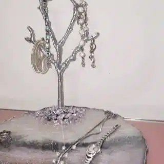 - Expecionale Handmade resin jewellery tray with metal hanger and 4 resin stands .. inlaid with crystals and stones ..