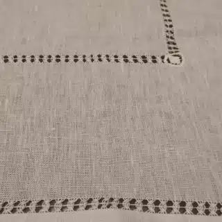 Introducing our linen table runner with exquisite hand embroidery, featuring a delightful display of flowers.