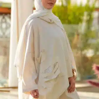 - Pure linen beige shawl hand embroidered with cherry blossoms pink hues.