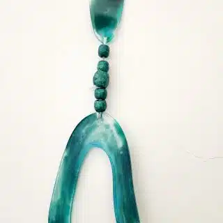 Add balance and calm to your wall with this handcrafted resin wall hanging. Featuring geometric shapes in soothing sea tones and earthy beads, it’s a perfect piece to bring modern boho energy into your space.