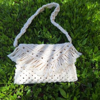 Knot-it-All Women’s Premium Handmade with Macrame Sling/Cross Body Handbag Off White, white