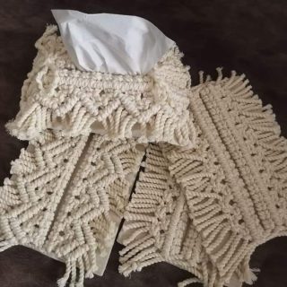 This Bohemian table lampshade is handwoven with a macrame cord decorated with 2 rainbows And 4 pompoms.