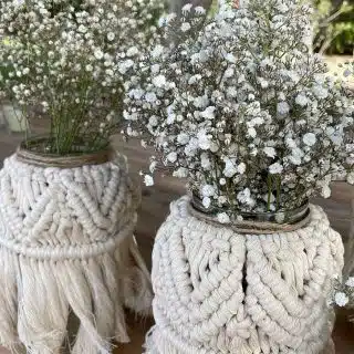 A one-of-a-kind boho-style wall art blending handcrafted resin elements with 100% cotton macramé.