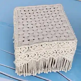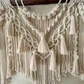 A one-of-a-kind boho-style wall art blending handcrafted resin elements with 100% cotton macramé.
