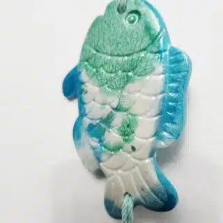 Bring a splash of sea magic to your home. This vertical wall hanging features a fish, dolphin, shell, and seahorse—crafted in translucent aqua resin with hand-threaded beading.