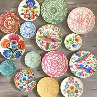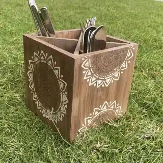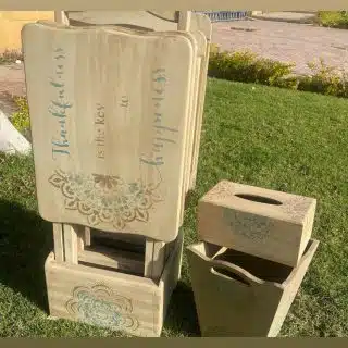 Set of 4 foldable tables with stand in vintage beige mandala design with touch of metallic blue