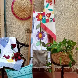 الوصف: مفرش باتشوورك قطن شغل يدوي من قطع القماش الملونة.