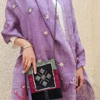الوصف: شال كتان نسيج يدوي، لون موف تطريز يدوي جنوب سيناء بالخيط القطن و الخرز.
