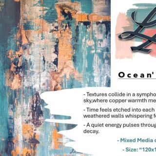 -Textures collide in a symphony of earth and sky, where copper warmth meets deep ocean blue.
