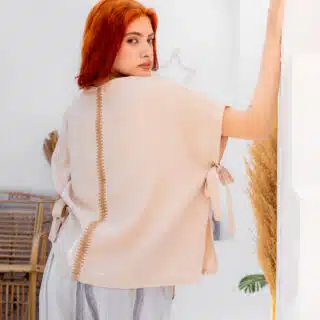 Beige Spanish linen tow-sides tied blouse very chic , unique and simple wear in skirt or linen wide leg pants 🩷