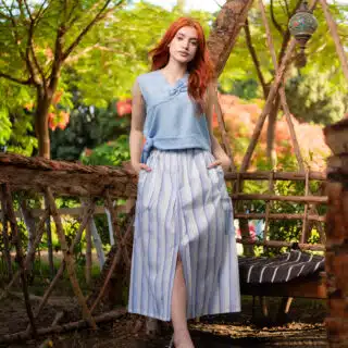 Full outfit (baby blue Spanish linen top+cotton stripe cargo skirt)
