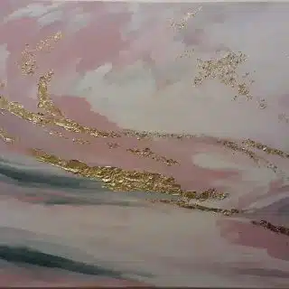 Hand painted by acrylic colours and gold leafs with modern gold frame .