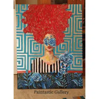 Modern decorative unique portrait with silver leaves by Paintastic.