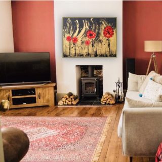 Modern decorative unique portrait with silver leaves by Paintastic.
