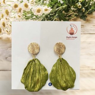 Crafted from bright green polymer clay and decorated with fine golden glitter lines for a soft shimmer.