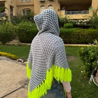 Grey & Yellow Crochet Puncho