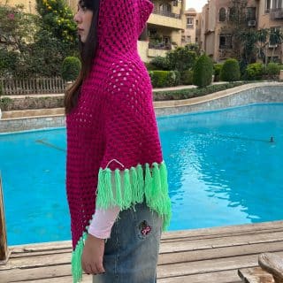 Fuschia & Green Crochet Puncho
