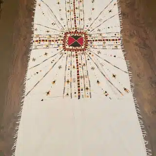 Pure linen white scarf hand embroidered with colorful Nubian theme.