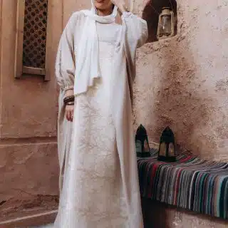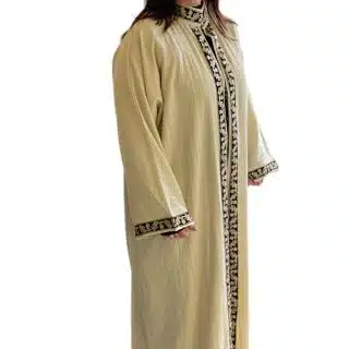 عبايه مغربي بالكابشو كتان طبيبعى مع كوروشيه