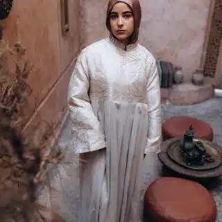 Elevate your style with this beautifully crafted beige kaftan, featuring intricate embroidery along the edges for a touch of sophistication. Designed for effortless elegance, this versatile piece is perfect for casual outings, special occasions, or cozy evenings. The lightweight fabric ensures comfort, while the relaxed fit offers a graceful silhouette. Complete with wide sleeves and a hood for a modern twist, this kaftan blends tradition with contemporary fashion.
