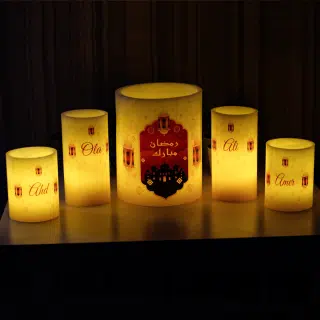 5 Ramadan Candles, Personalized Candles, Flameless Candle.