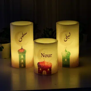 Ramadan candles set of 3 piece, Personalized Candles, Flameless Candle.
