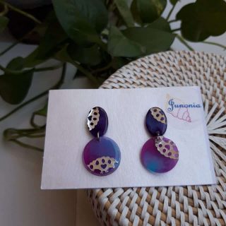 Random shape magenta earrings, the color flowing like flower veins with a touch of gold paper