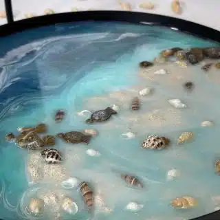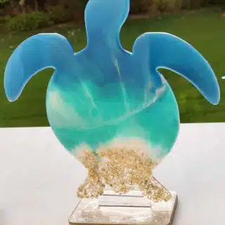 Turtle on stand Made from different materials acrylic, resin, wood and natural seashells … -
