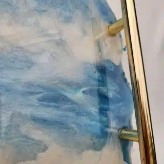 Hanged shelf,, made of natural pine wood log slice ,, blue waves design with epoxy resin,, and a black steel hanger…..