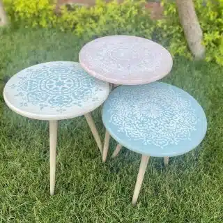 Decoupage and hand painting coated with water resistance coat – glass top is available for 75 pounds extraOrders takes 7 days
