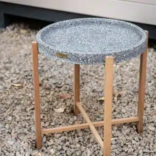 Meet Anuk, our effortlessly elegant terrazzo side table,a durable cast stone top crafted from recycled glass or pebble stone. this solid and relatively lightweight is suitable for indoor and outdoor space.