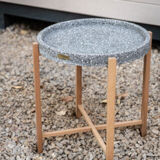 Meet Anuk, our effortlessly elegant terrazzo side table,a durable cast stone top crafted from recycled glass or pebble stone. this solid and relatively lightweight is suitable for indoor and outdoor space.